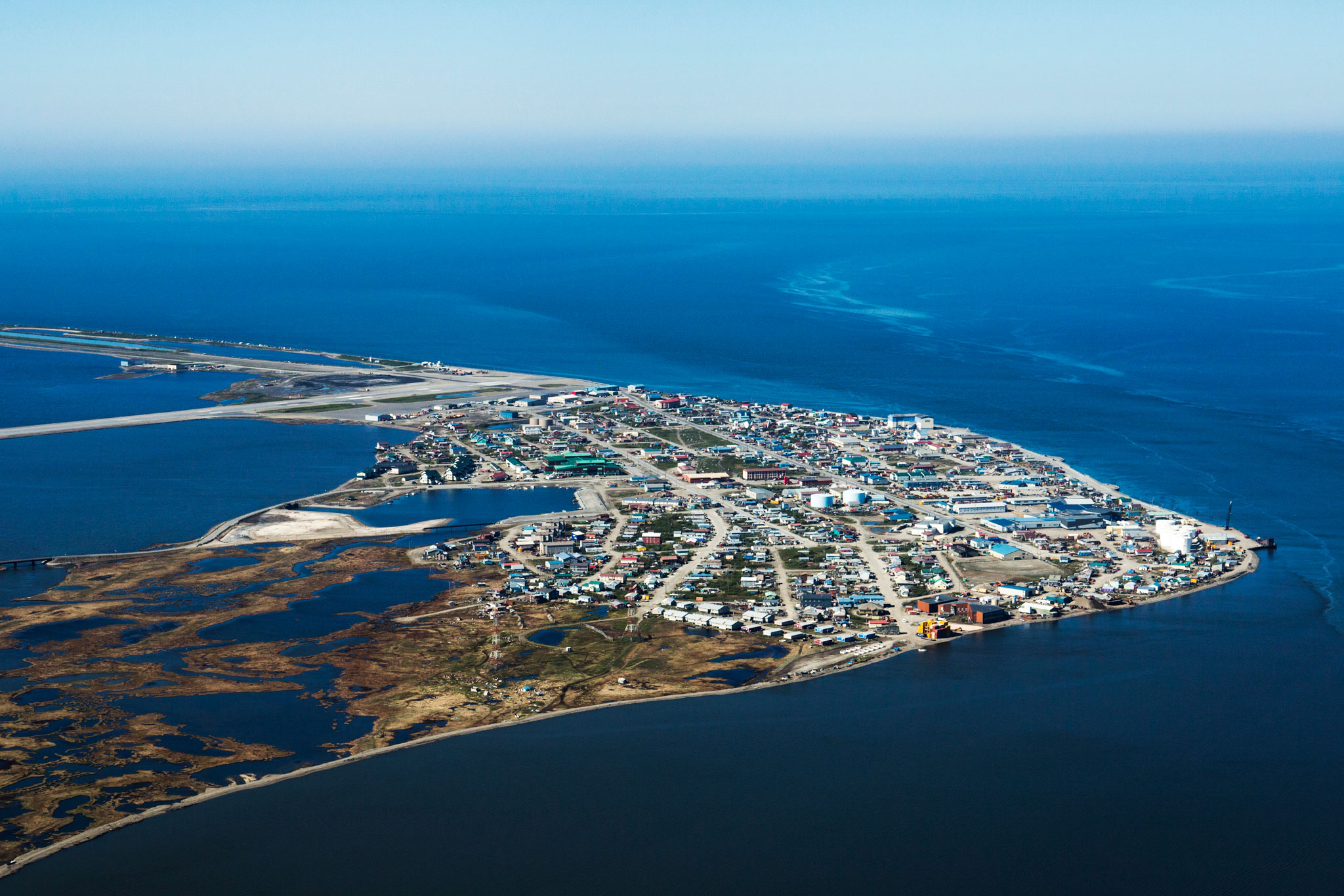 Kotzebue (pronounced KOTS-é-bew) is a harbor city on the Baldwin Peninsula that faces the Chukchi Sea, north of the Bering Sea, and sits approximately 33 miles above the Arctic Circle.