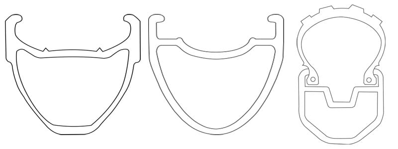 Tubeless-ready rims (center image below) implement a different hooked sidewall design than UST models, although it serves that same fundamental purpose—to lock the bead securely into place without relying on a tube.