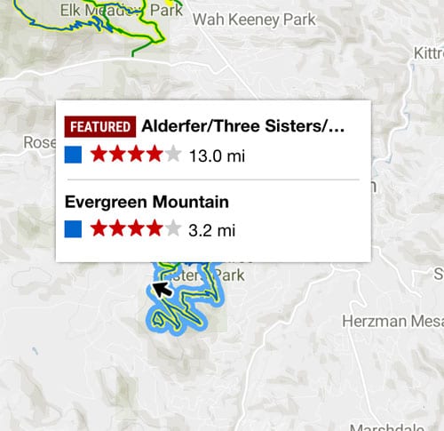 In fact, these two are so similar that they share far more in common than otherwise, including search functionality, map views, color-coded trail difficulties, ride reports, wish lists, images, weather, upcoming events, and so forth.