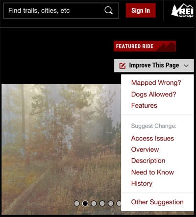 After clicking on the “Improve This Page” link, MTB Project will walk users through the process of editing details like the description or GPS data.