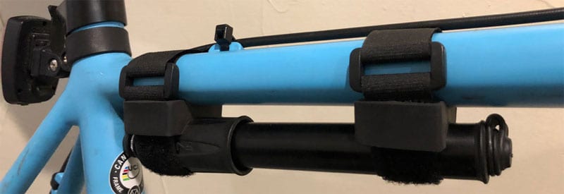 The pump’s handle has a larger diameter than the body, potentially causing it to sit at a bit of an odd angle in this location. However, these padded, Velcro-equipped straps minimize this difference, while maintaining a clean look and keeping everything relatively unobtrusive while riding.