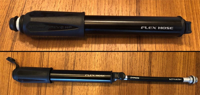 It still comes with top-notch features, though, like a lengthy (for the class) Flex Hose that stows inside the pump’s body, Presta and Schrader valve compatibility, and CNC machined aluminum parts. Based on my experience, it inflates incredibly quickly for its size.